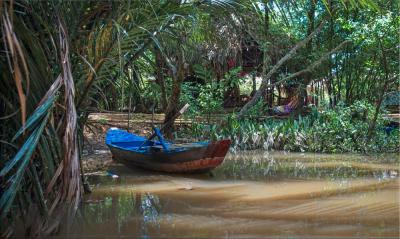楽しく過ごせました。暑いですが。影に入ると涼しいです。小舟でメコン川クルーズは広い川を