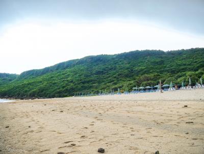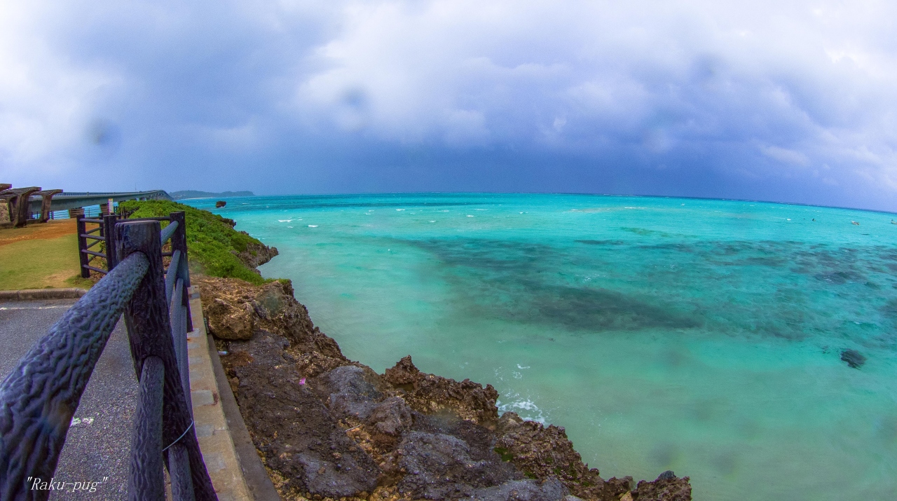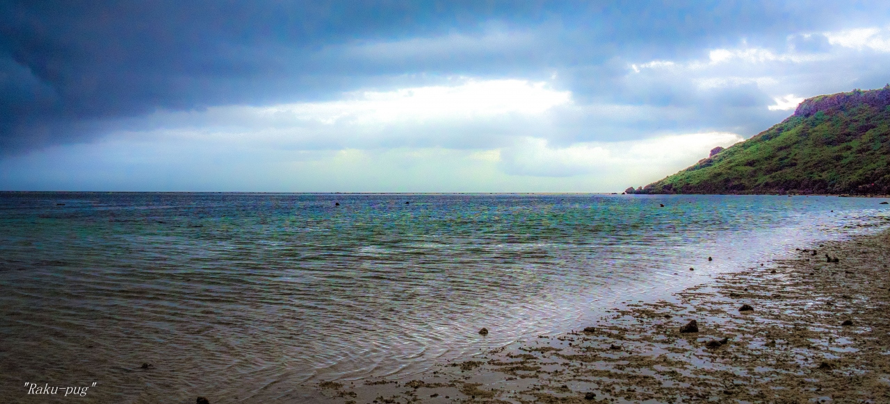 綺麗な 砂浜ビーチが 見えるはずだったのですが 黒い雲が・・・