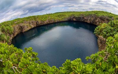 神秘的な池 2つの 池が 地下で 繋がっている。珍しい 通り池