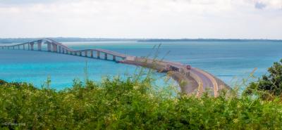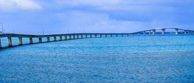 陽があたると ブルーの海に 変わるのを 見ながら渡る美しい 大橋!!