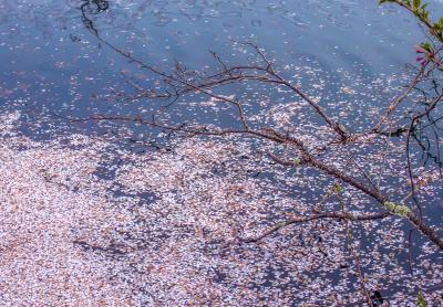 外堀の 池に 桜の花びらが 幾重にも 重なりあって