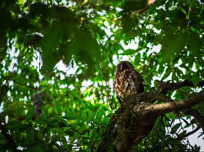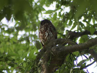 豊能町に 野間の大けやきがあります。偶然 アオバヅクを見つけて。何回か 写真を 撮りに 行っていました。ネットで 偶然 アオバズクの家族が 大けやきに巣を作って ひなを 育ててると。我が家のわんこと 亀岡に新鮮な卵を 買いにいく途中にあります。メスと オス ひなは木の巣の中に入っている。自然の フクロウ アオバヅク 初めての経験です。伊豆ナンバーの車も ありました。皆 望遠のカメラで 20人くらい 撮影しています。望遠レンズで やっと メスのお顔 撮れました。オスは 反対向いたままで じっとしています。鳥には 詳しくないですが 家族で ひなを育ててる姿を見て 感動しました。7月12日の昨日の撮影。樹齢1000年の大けやきに 巣を 作っています。