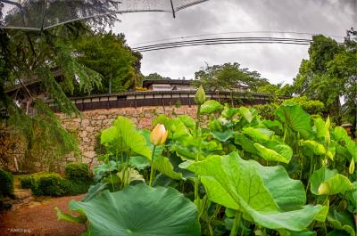 階段の下に 蓮池があり つぼみですが 素敵で 落ち着く