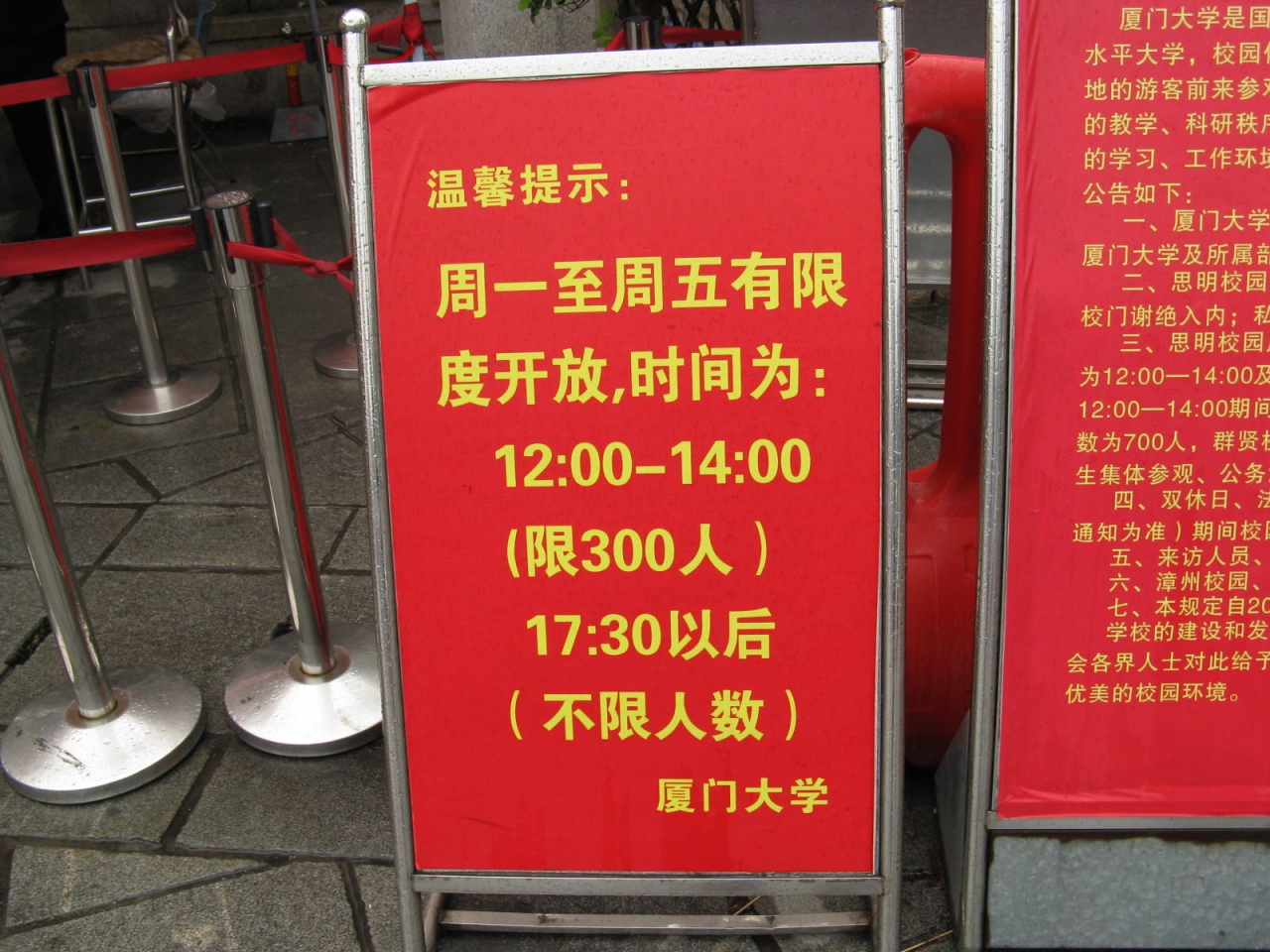 歩いて10分以内に厦門大学正門が有り、大学内の魯迅記念館へ学習しに行こうと思いましたが、一般人の入場制限が有り、月曜から金曜日の12:00~14:00 300人限定との事。我の予定時間外でした。どなたか追試していただければ幸いです。