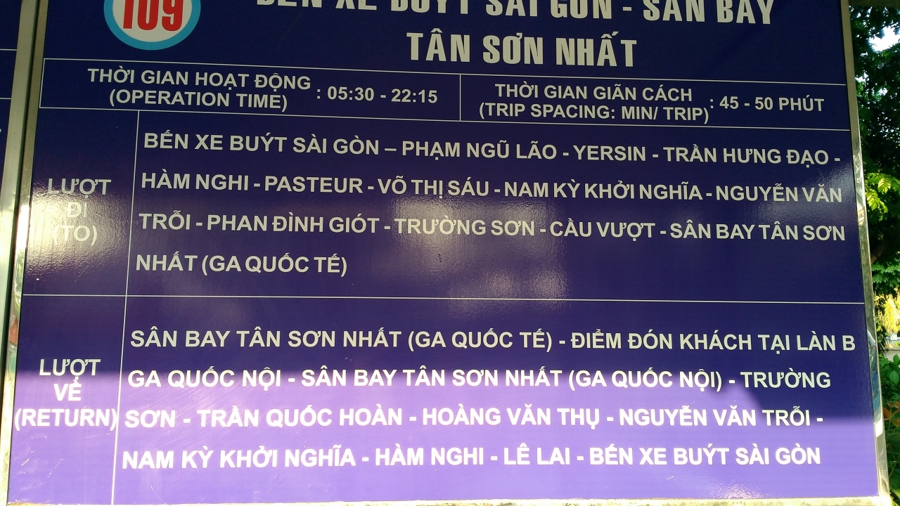 空港からサイゴン・バスターミナル 近くのホテルへ行くべく109番バスを使いました。運転手は食事中で発車迄30分以上待ちました。