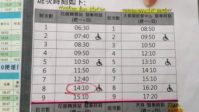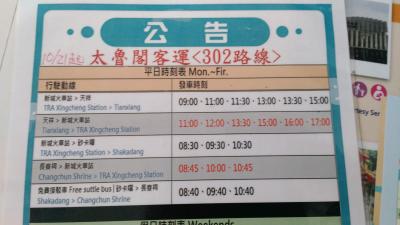 その先の天祥迄の観光地へは、太魯閣客運302路線を使えるそうです。しかしながら、この302路線の戻りのバスは新城火車站までです。