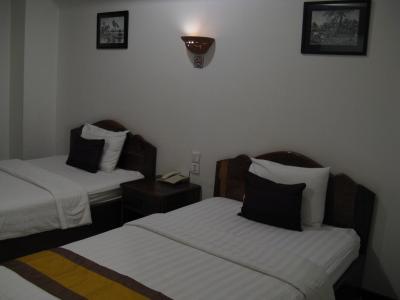 アゴダで予約し3泊26USD を現金で支払いました。シャワーのお湯は出ますがぬるい。排水は掃除されてません。エアコンは効きますがリモコンが無いので温度調整不可で寒い思いをしました。テレビは有るけどリモコンが壊れてました。極めつけは外窓の鍵が掛からない。良ければ連泊しようと思いましたが、近くのホテルに移りました。立地だけは良く市街は徒歩圏内です。