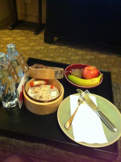 フルーツ3種とパイナップルケーキ、ヌガーがウェルカムバスケットに入っていました。