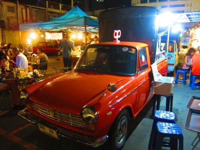 週末開かれるナイトマーケットに行ってきました。まだあまりガイドブックに紹介されていないので観光地化されてなく地元色の強いマーケットで楽しめました。場所は地下鉄タイカルチャーセンター駅から徒歩5分もかかりません。アンティークな雑貨やレトロな車がいっぱいおいてあります。ファミリー向けのエリアは人も多くにぎわっていますが、大人向けのエリアはお酒を飲んだり、音楽を聴いたりしてまったりできます。