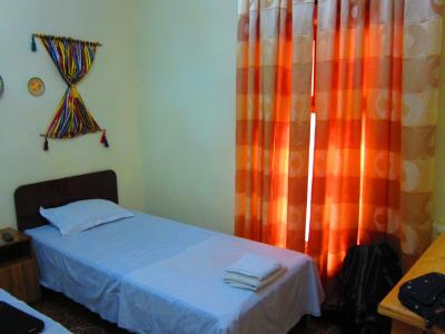 ラビハウズ目の前の宿に2泊しました。ドミは6人で10$の部屋か2人で15$の部屋と言われたので、2人の部屋にしました。多分ツインの部屋を相部屋にしたのではないでしょうか?申し分ない水周りでバスタブ&ホットシャワー。かなりきれいでした。朝ごはんも大変おいしかったです。wifiも中庭でサクサク使えました