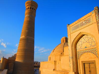 タジク語で大きいという意味どおり高くて大きいミナレットです。ブハラといえばこの景色を思い浮かべます。ミナレット自体は登れないし、他の建物と違い地味なので味気ないですが、ミナレットの壁面の模様はとてもきれいでした。