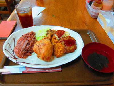 国際通りから少し奥まったところにある花笠食堂に行きました。いつ行ってもA・B・Cランチがあります。夜に行ってもランチなんです。ランチと名のつくものはご飯と汁物が選ぶことが出来ます。ご飯は白米、赤飯、玄米。汁物は味噌汁、中身汁など5種類から選ぶことができ、自分の好きなお皿を作ることができます。おかずはおいしいのですが、お米がやわらかめに炊いてあったので、少し残念でした。