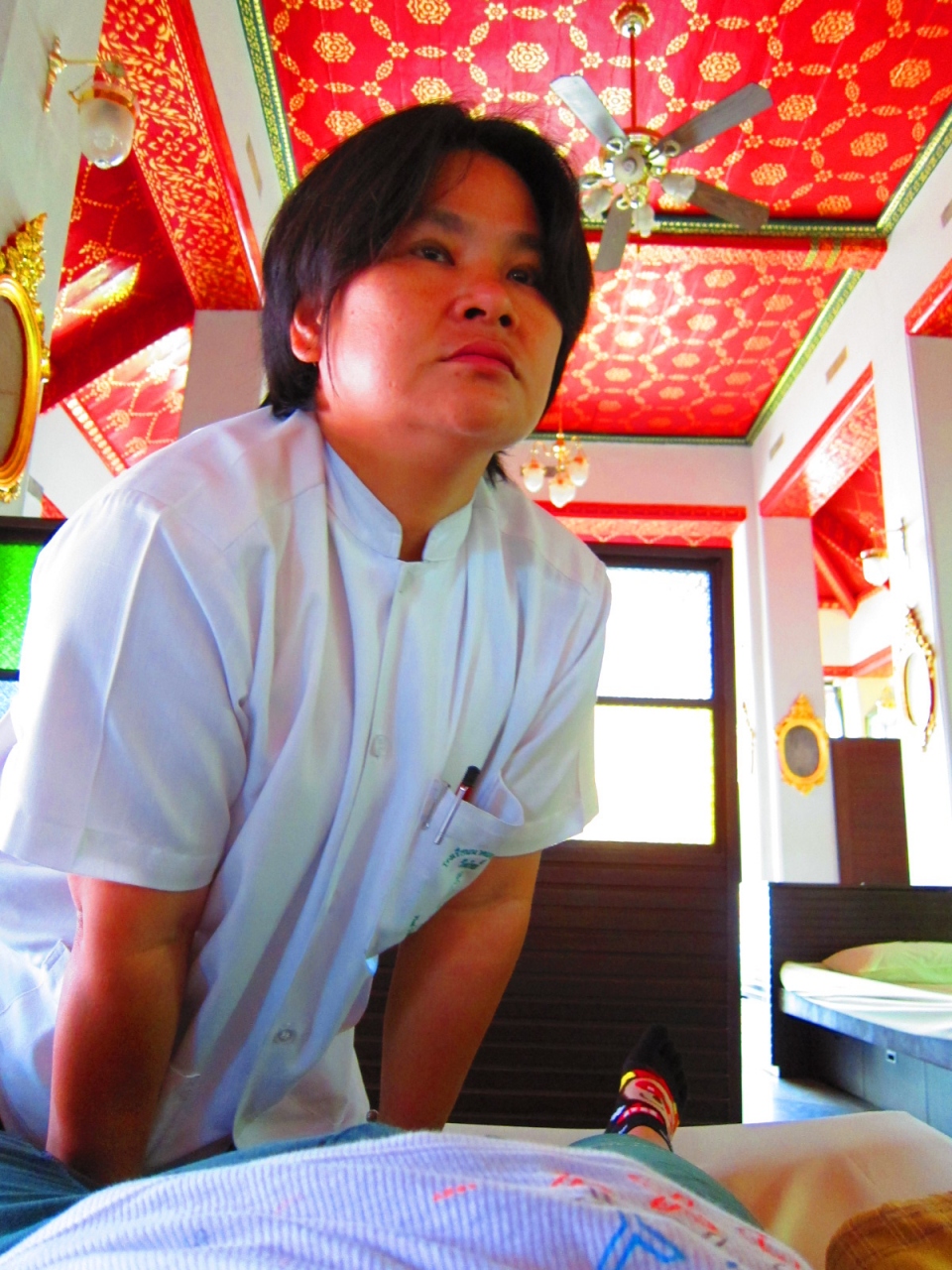 ワットポーの境内の一角にあるマッサージ屋さんですが、タイマッサの総本山というけれど、個人的にはあまり好きではありませんでした。施術室の造り上、オープンすぎる感じだし、何より自分の施術をしてくれる人が他の施術師と話をしてしまって、集中してくれなかったです。それに、値段も1時間400Bなので、普通のところで2時間ぐらいできそうな金額設定でした。