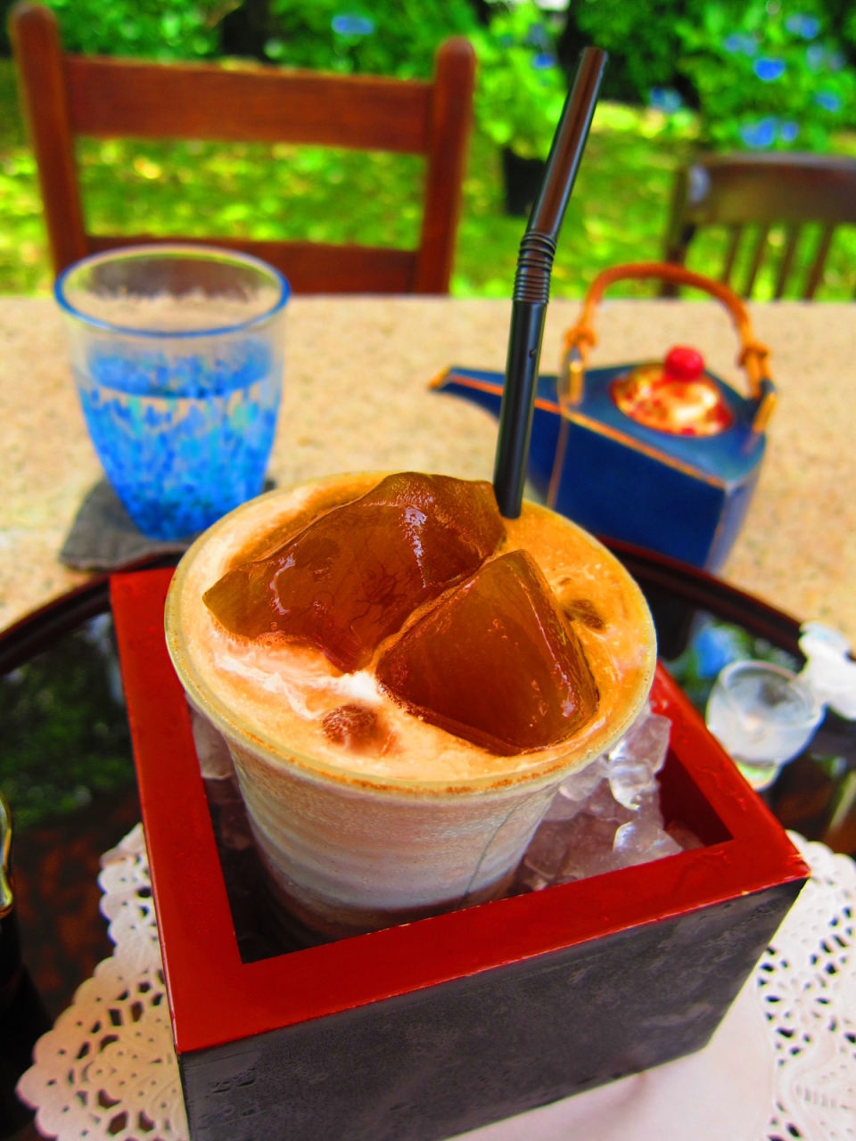 多治見の虎渓山にある灯屋さんは本当に芸術的なコーヒーがいただけます。公共機関でのアクセスはちょっと大変なので、車でのアクセスをお勧めします。お茶をいただくスペースは屋内も屋外もとっても雰囲気がありました。それ以上に冷やしコーヒーはすごくて、見た目のインパクトもすごかったんですが味もおいしかったです。氷の入ったコップに温かい入れたてのコーヒーを入れるのですが、コーヒーが薄くならないようにコーヒー味の氷が入ってます。値段はコーヒーとしては少し高めの600円ですが、モーニングの時間帯に行くと同じ料金でフレンチトーストとアイスクリームがつきます。お得なので是非お勧めします。