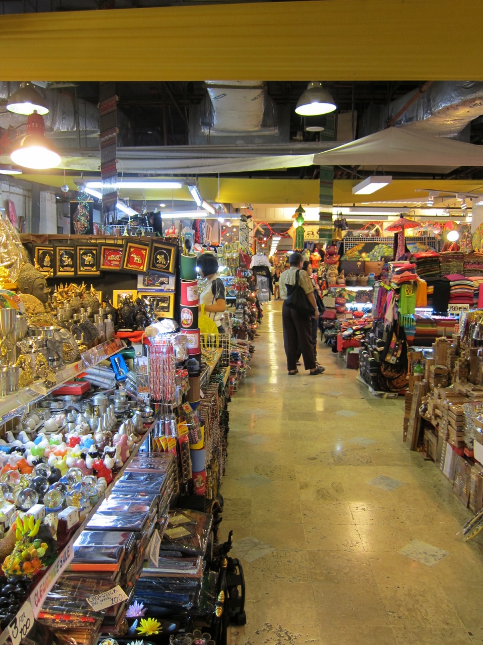 人・店・物でごった返すMBK。食料品以外ならほぼ何でも揃うところです。電化製品のフロアには携帯電話のお店や時計のお店ばかりでした。上のほうのフロアに行くとタイ独特のお土産がいっぱいあります。ほとんどの物は揃いますが、値段がついていないため、値段交渉が必至です。値段交渉しだいでは激安にもなりますので、ぜひぜひがんばってみてください。私は個人的に上のほうのフロアにあるアジア雑貨のお店が好きです。