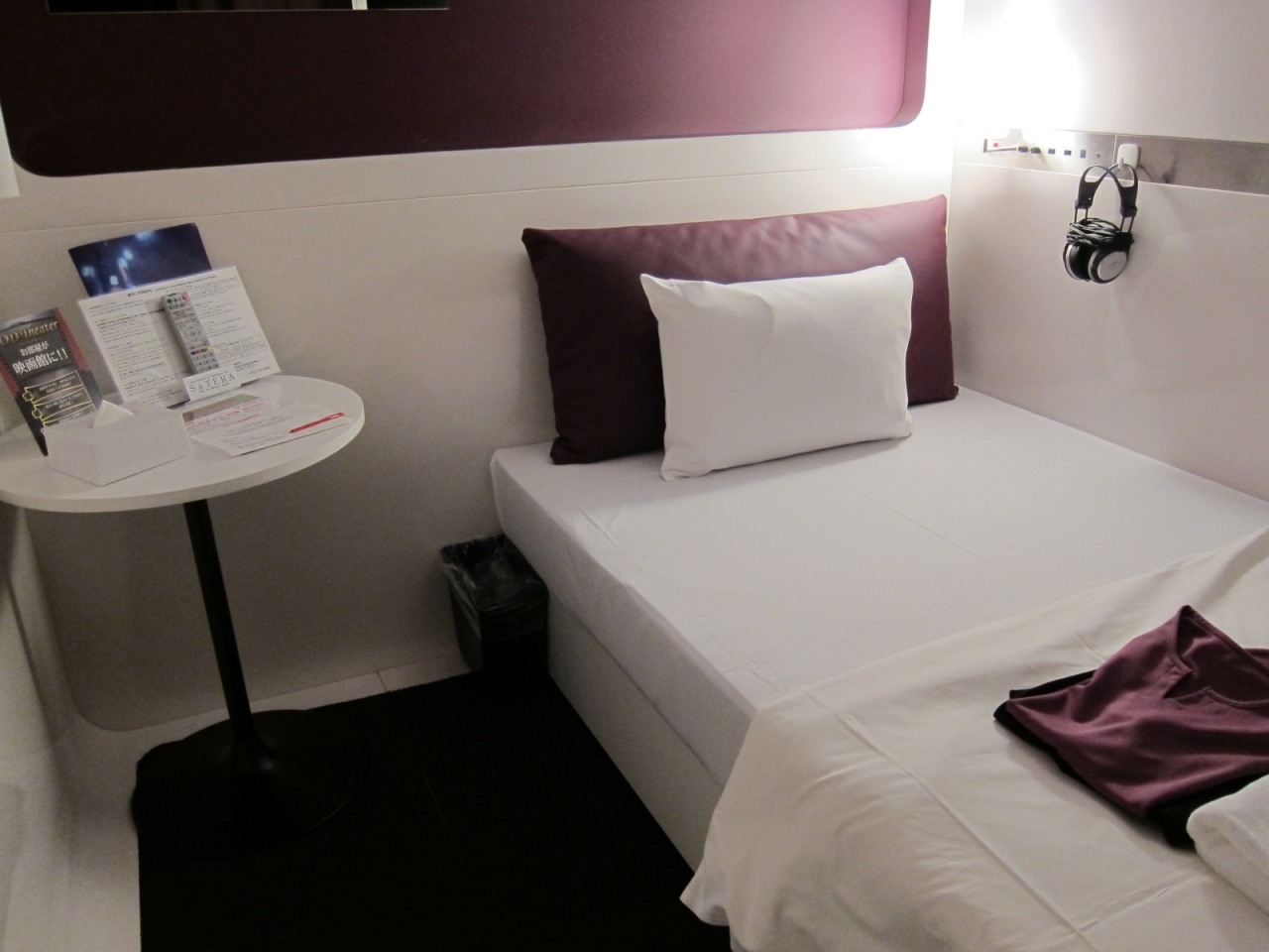京都烏丸に飛行機のファーストクラスをモチーフにしたカプセルホテルがあります。地下鉄の駅から徒歩3分ぐらいなので、迷うこともないし、京都市内の観光名所へは徒歩でいけるところが数多くあります。室内もカプセルホテルと聞いていたので、ちょっと不安だったけど、自分の部屋はカーテンで仕切っているし、男性と女性はフロアごとで違うので安心でした。また、フロアに入るときも鍵がないと入れないので、男性が女性のフロアへ入ることはまずありません。自分のスペースはかなり広く、普通のビジネスホテルに風呂とトイレがないという感じでした。とっても近代的で快適に過ごせました。