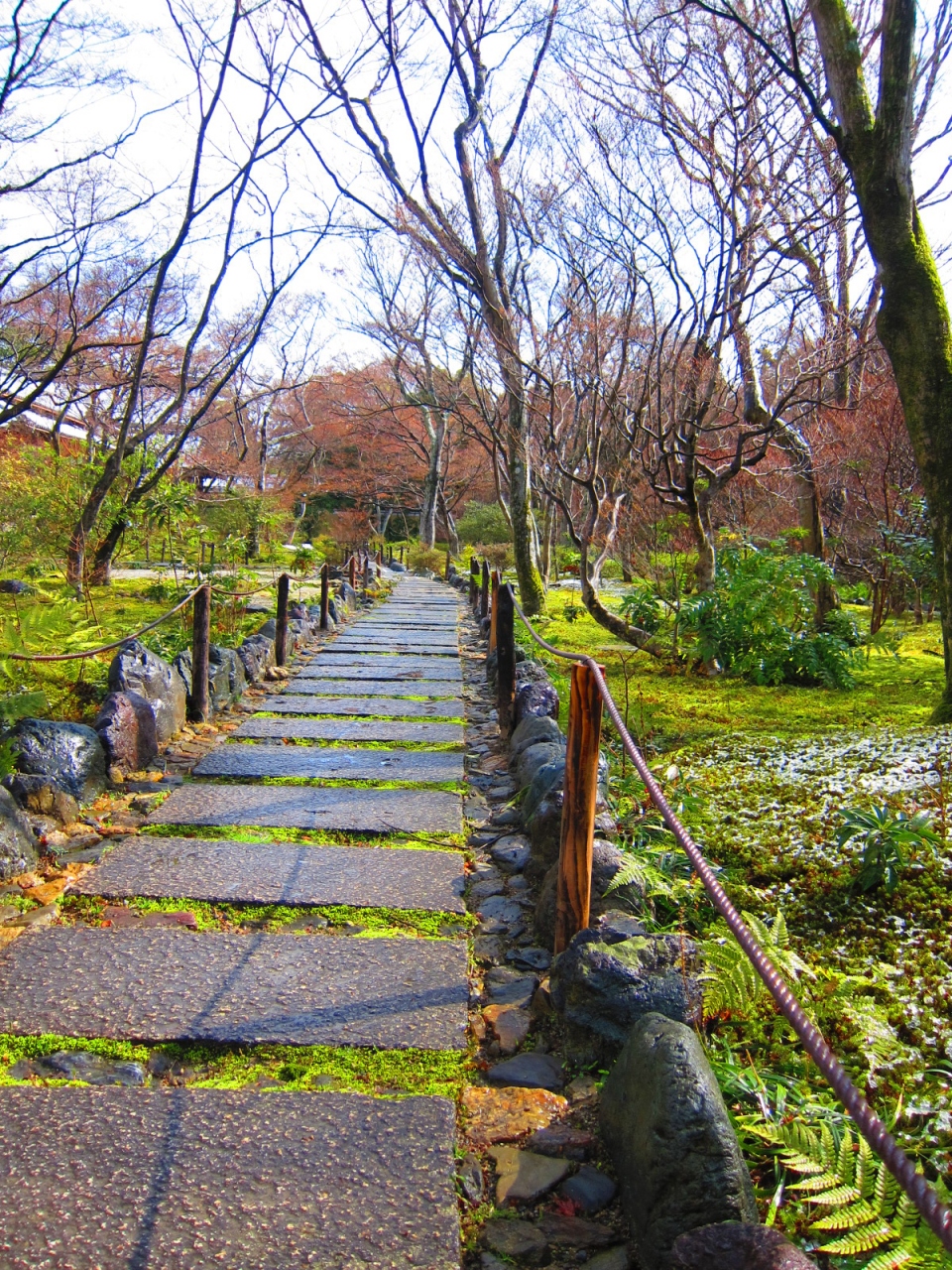 常寂光寺は嵐山・嵯峨野エリアにあり、2011年のJR「そうだ、京都へゆこう」の広報で使われたお寺で有名です。お寺の本堂へと続く階段は少し急ですが、昇りきってしまえば、そこから京都市を一望できる景色のきれいなところです。また、境内のいたるところに緑の苔が敷かれているので、いつ行っても緑色がきれいです。紅葉のシーズンはとっても混むそうですが、シーズンをずらせば静かでのんびりとしたお寺です。