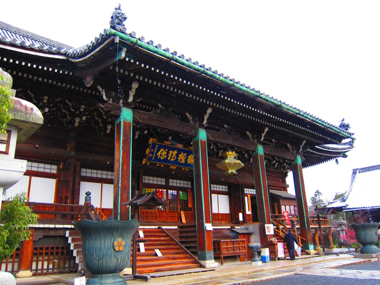 京都嵯峨野エリアにある、清涼時は源氏物語ゆかりのお寺です。アクセスは嵯峨野エリアに不慣れな方だと迷ってしまうかもしれませんが、道路のつき当たりに大きな門が出迎えてくれるので遠くからでもわかります。門をくぐって中に入ると大きな庭と黒光りした本堂が建っています。私がたずねた時は境内を工事していたので残念でしたが、門から見る建物の景色は圧巻です。