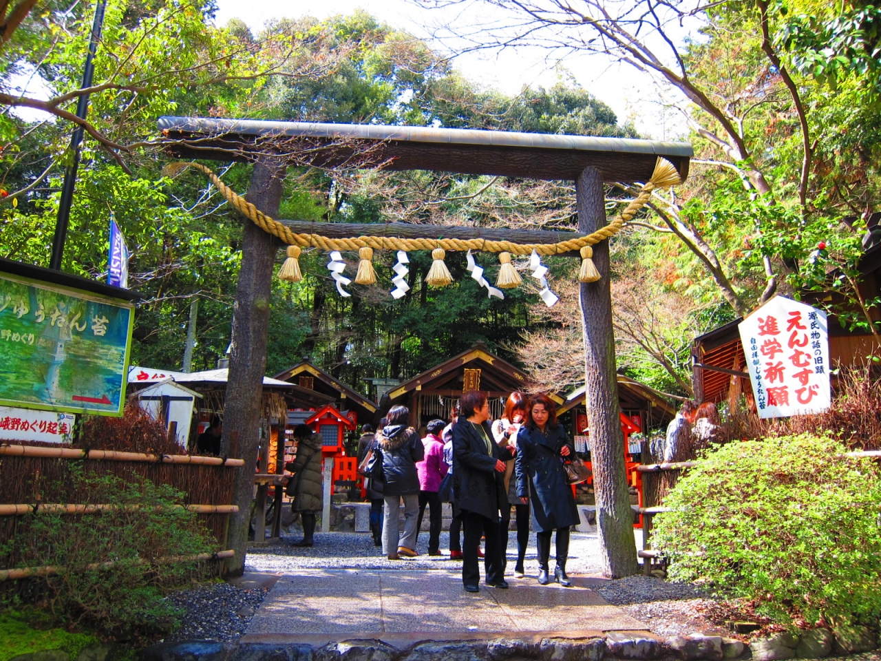 竹林の小道の一角にある野宮神社は源氏物語ゆかりの神社です。神社の鳥居は黒鳥居といわれ源氏物語にも登場します。そんな野宮神社では縁結びのお守りがとってもかわいかったです。2人の子供が仲良く手を取合っているのが刺繍されていました。色も赤と白の2種類あってどちらにしようか困ってしまいます。観光客が多くて落ち着いておまいりできないかもしれませんが、是非行ってみて下さい。