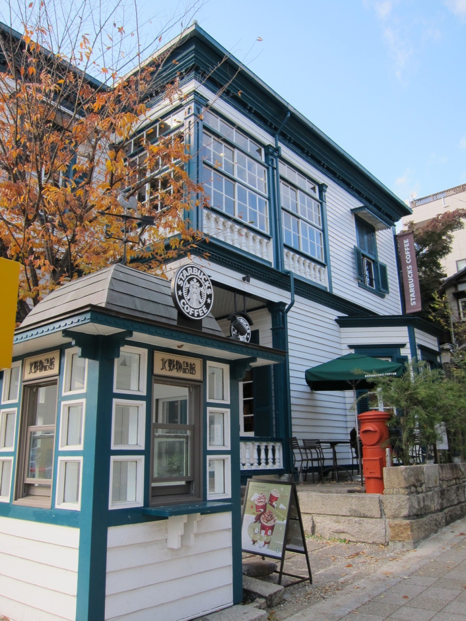北野にあるスタバは街並みにとけ込むように洋館でした。濃い緑と白色の建物でかわいかったです。ゆっくるするスペースもレトロでおしゃれなアンティークな家具でいっぱいでした。すてきなお部屋がいっぱいでどこに座ろうか迷っちゃうくらいでした。