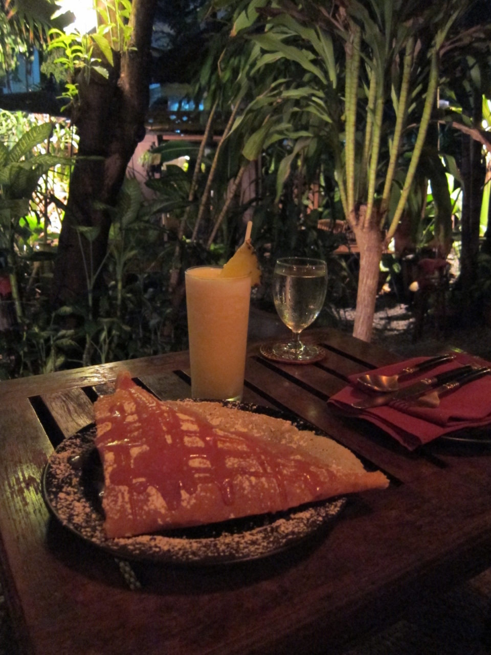 アーソク駅から徒歩約5分ぐらいのところにあるクレープス&Co.に行ってきました。私はアレルギーがあるので食べれる果物に限りがあるのでsが、自分だけのオーダーシートで食べたいものだけをクレープに包むことができます。デザートだけでなく、食事としてたべるクレープやモロッコ料理などもあります。食事を楽しむレストランとしてだけでなく、デザートを楽しむカフェとしてのんびり楽しむことができます。また、シェフも時間が許すときはお客のところに挨拶しにきてくれてサービスもよかったです。