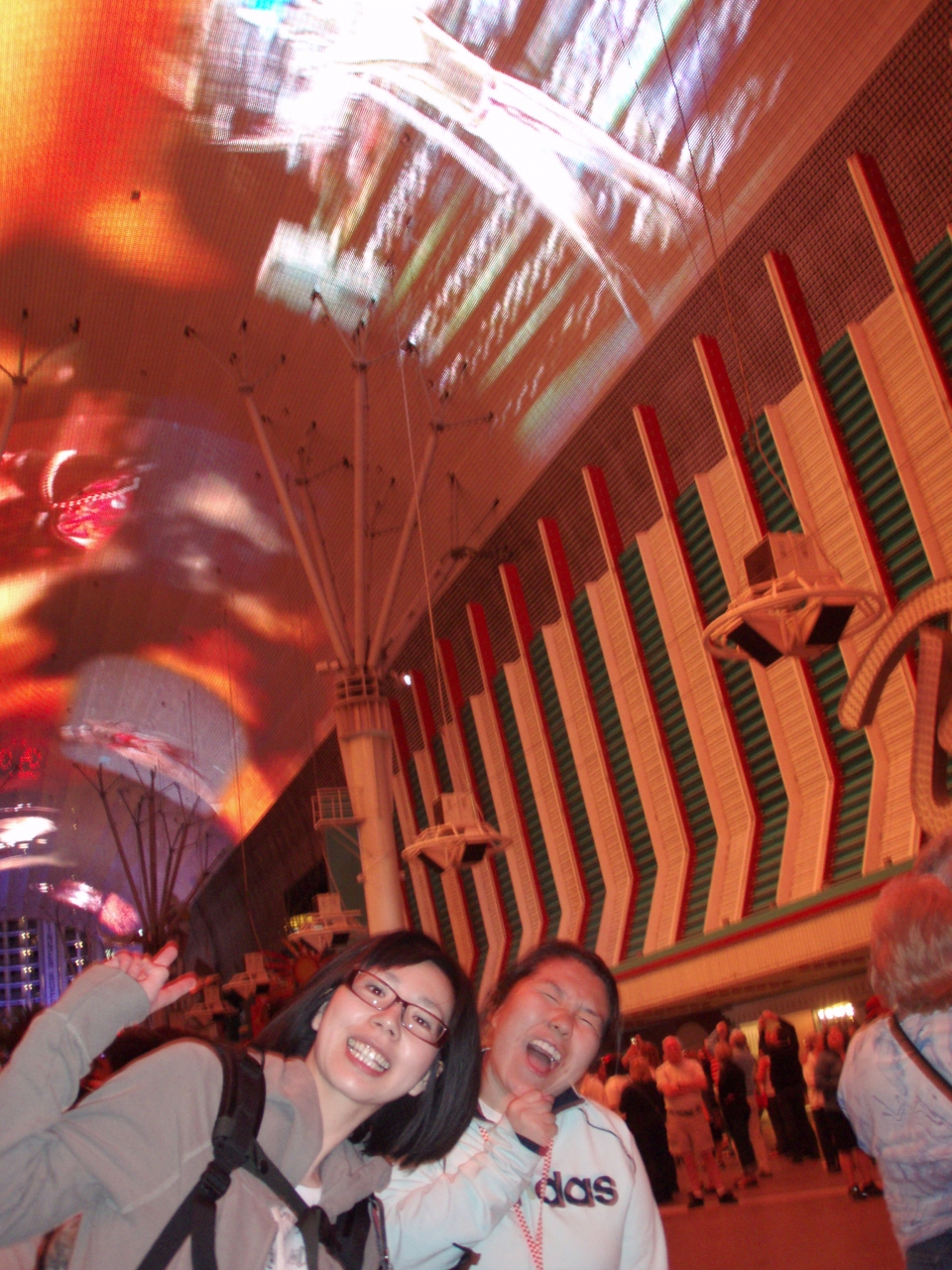 ラスベガスのダウンタウンにあるフリーモントエクスプレスはラスベガスで無料で楽しめるショーのひとつです。毎時ちょうどになると音楽が流れ出し、アーケードが大きなスクリーンに変化し、大音量で楽しませてくれます。私達が行ったときはちょうどクイーンの催しでした。ノリノリで楽しめるのでよかったです。アーケードの中のお店屋さんはお土産やが多かったです。ラスベガスのABCマートもありました。