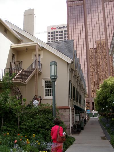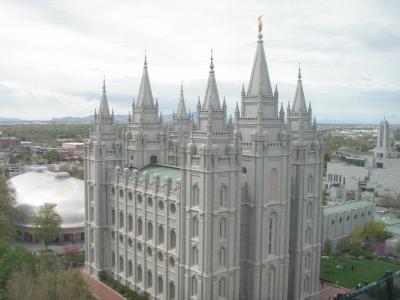 ソルトレイクのテンプルスクエアーに隣接する、ジョセフ・スミス記念ビルの最上階はテンプルスクエアを一望するには絶好のポイント。最上階にはレストランがあり、テンプルスクエアを臨む席はいつも予約が必要でなかなか取れません。なぜかというと、ユタの人はテンプルスクエアの見れるこのレストランでプロポーズをする人が多いそうです。記念パーティとかもよく開かれ、貸切になることが多いそうなので、事前に予約や確認するといいと思います。テンプルスクエアを見るだけなら、無料でいつでもこれます。