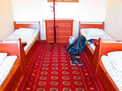地下鉄チョルスー駅から徒歩10分ぐらいの旧市街に宿はあります。空港からバスで行くことも出来ますが、夜にタシケントに着いた際はタクシーでの移動をおススメします。女性専用のドミトリーがあり1泊15$でした。朝ごはんもかなり量があり、おいしかったです。部屋でもwifiが使えよかったです。空港まで11番のバスで3・40分でいけます。