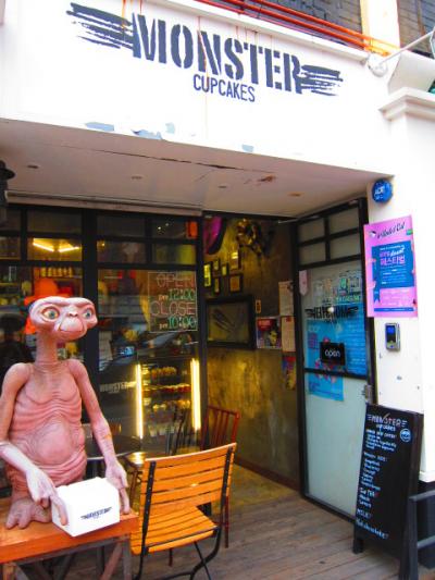 梨泰院にあるモンスターカップケーキに行ってきました。場所はノクサピョン駅から徒歩10分くらいのカフェが多く集まるエリアにあります。目の前は教会でした。お店の外観から目立つので分かります。店の名前がモンスターというだけあって、ケーキはどれも個性的なものばかり。値段は大体1つ500円ぐらいで買えます。味は普通のカップケーキですが、見た目にほれて買いに行きました。うまく包んでくれるので、日本に持って帰ってきてもまだきれいな状態でした。