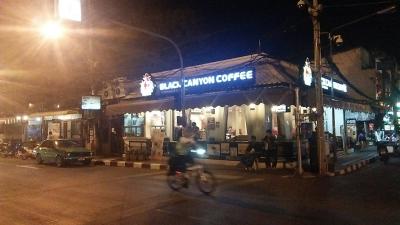 ターペー門のすぐ目の前になるブラックキャニオンコーヒーです。チェンマイの物価としては少し高めのコーヒーです。コーヒー1杯50~80Bぐらいでした。少し高めなのであまり行きませんでしたが、待合場所としてはよく行きました。チェーン店がチェンマイ市内にいっぱいあります。