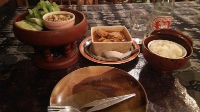 チェンマイのお堀の中にあるガイヤーンの有名店へいきました。イーサン料理がいただけます。お店の前で焼かれたガイヤーンは半身から注文ができます。注文したら切って持ってきてくれます。開かれずに焼かれているのでジューシです。味付けはニンニクが利いていて個人的には好きな味ではなかったです。パパイヤのサラダはとてもおいしかったです。