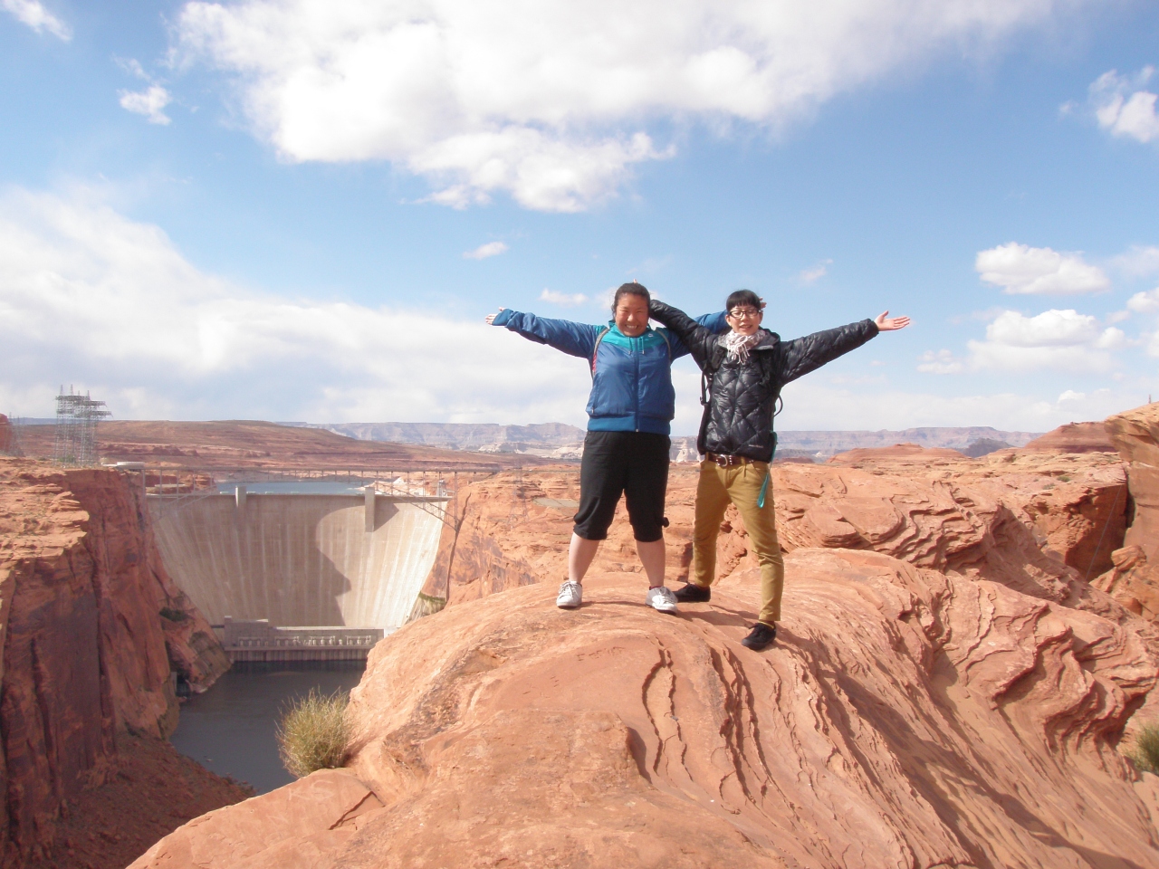 レイクパウエルのダムが一望できるシーニックビュー(絶景ホイント)です。そこは地元の友達に教えてもらったので日本人はいませんが、ほんの少しの地元民が行くようなところでした。湖を右手に橋を渡るとすぐに看板はあります。ダムの橋から2分ぐらいでつきます。駐車場から5分歩けば絶景ポイントにつきます。シーニックビューなので無料です。とってもいい景色が無料で見れるので是非行ってみてください。