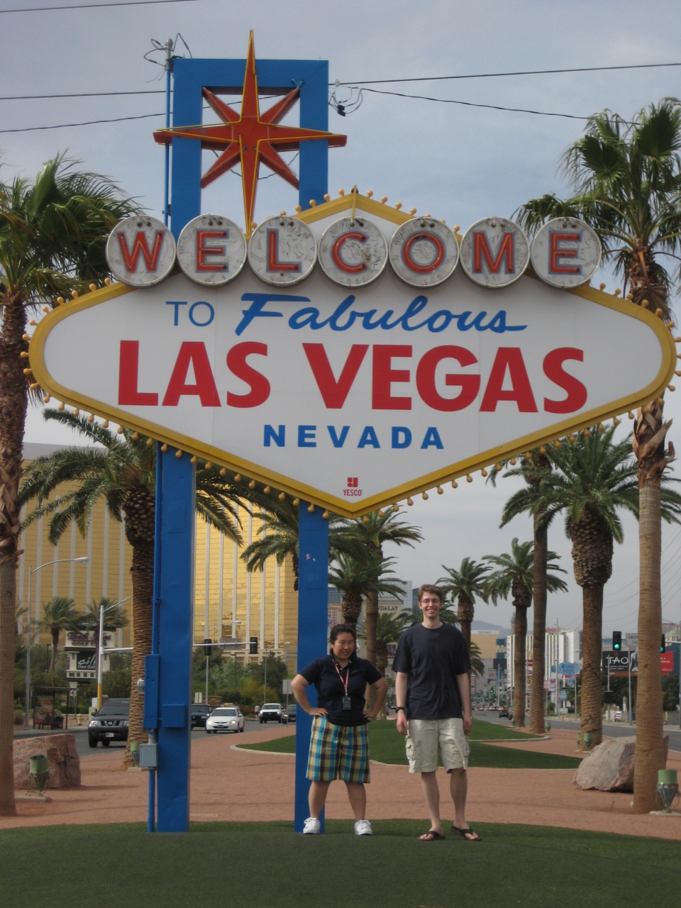 ラスベガスで有名な看板はストリップ上にあります。ルクソールから1・2ブロック南へ南下すると道路の真ん中にあります。以前は何もなく、近くに路駐してストリップを無理やり渡って写真を撮りにいきましたが、今では駐車場もでき、観光名所としていきやすくなりました。安全第一なので、みなさん一度行ってみてください。