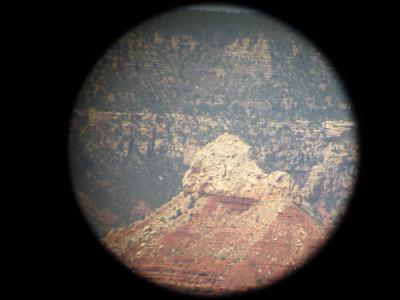 グランドキャニオンのいたるところに設置されている無料の望遠鏡を使ってかっこいい写真をとりましょう。撮り方は簡単。望遠鏡ののぞきこむところにカメラのレンズをつけてシャッターを切るだけです。望遠鏡の丸枠のなかからグランドキャニオンが撮れちゃいますとってもかっこいいし、うまく取れると人に自慢したくなること間違いなしです。