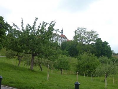 公園(?)内に入るとストラホフ修道院が見えてきました。ここ、ベンチもあ...