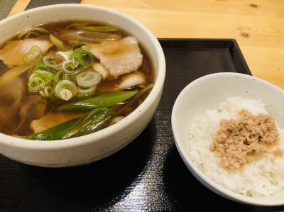 札幌市東区に新しくできた蕎麦屋さん。日高町にある有名店、いずみ食堂の系列店で、市内にも何店かあります。手でよったような太麺が特徴的で、この麺は個人的には温かいそばが合うなと思い、豚肉そばを注文。ランチ時は小ライスかそぼろご飯が無料でした。