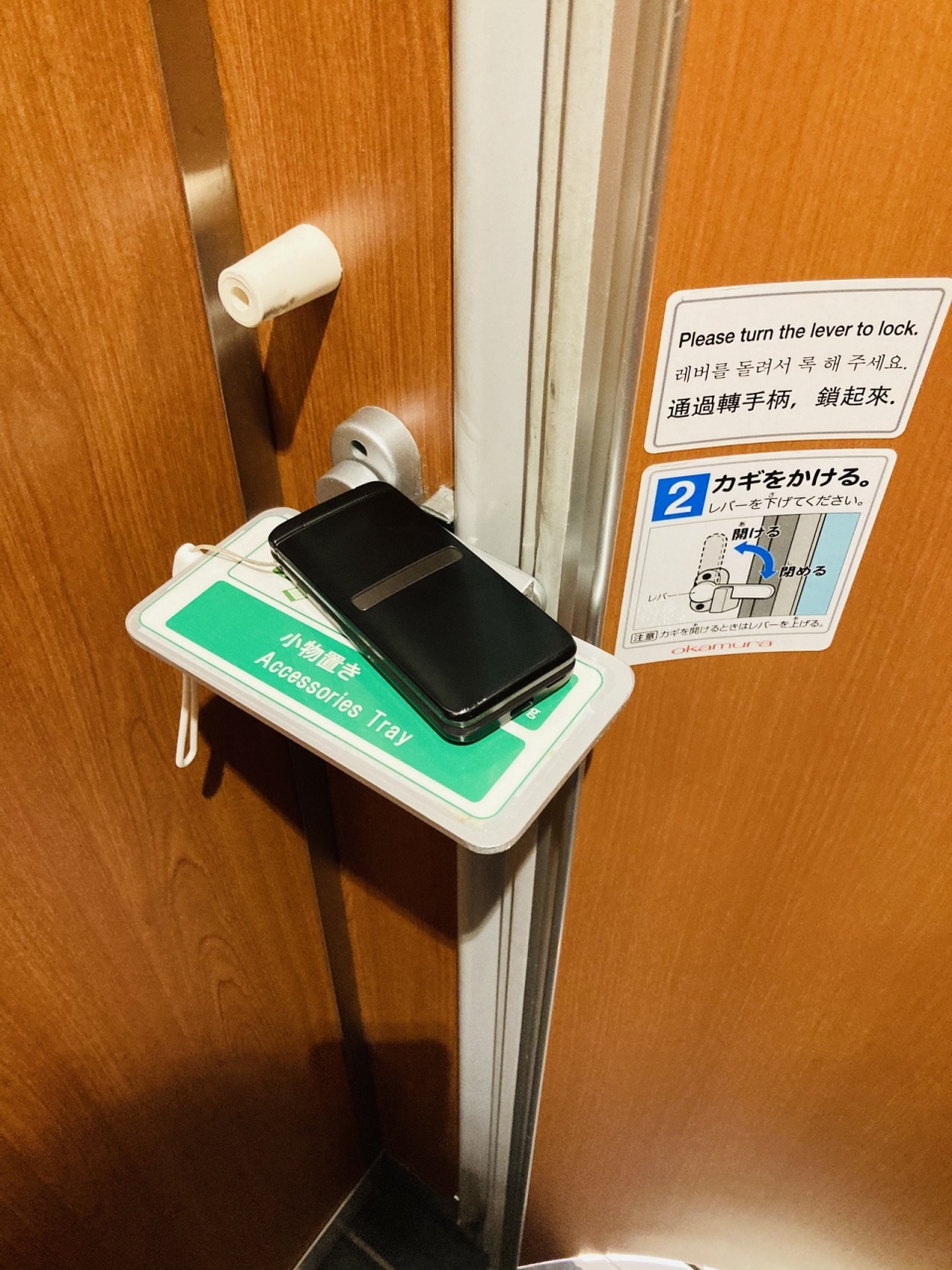 カギが小物置きになっており、出るときに必ず触らなければならないので、携帯などの忘れ物を防げるのです。すごい工夫。
