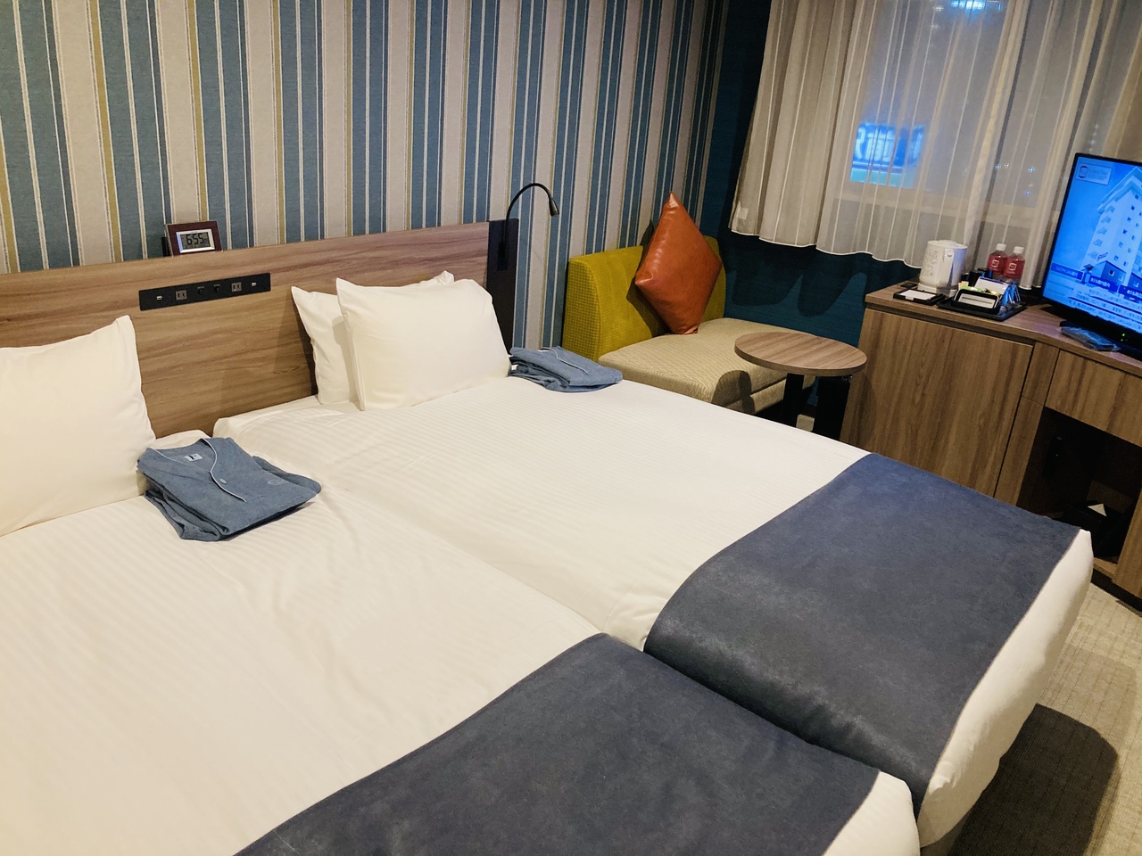 函館駅に隣接する商業施設、ハコビバの一角を形成するホテルです。お土産から食事、ローソンまで敷地内で済んでしまいます。とにかく便利。新しいホテルで、掃除も行き届いており快適。2階に大浴場があるため部屋には風呂は無し。