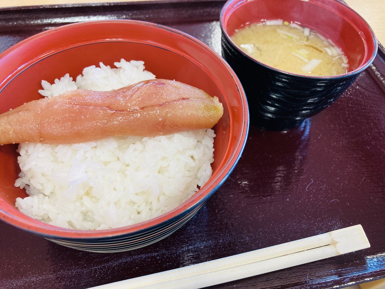 この食堂で頂ける食事も、ご飯の上にタラコが一本乗った豪快な物。