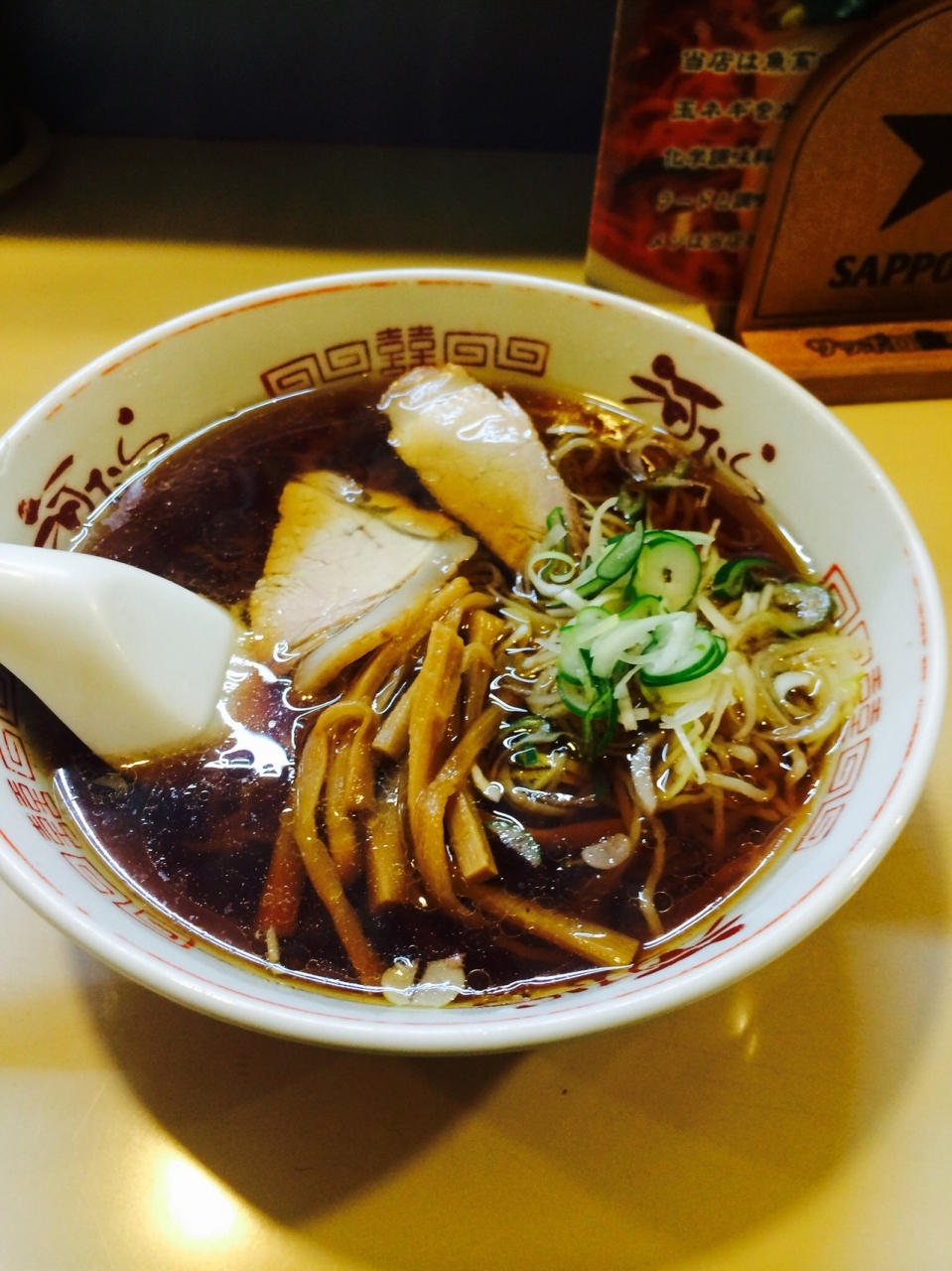 釧路ラーメンの特徴であるカツオと昆布のダシに醤油味です。