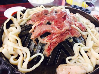 ジンギスカンは肉厚で、うっすらタレに漬けてあり、さらにツケダレをつけて食べます。