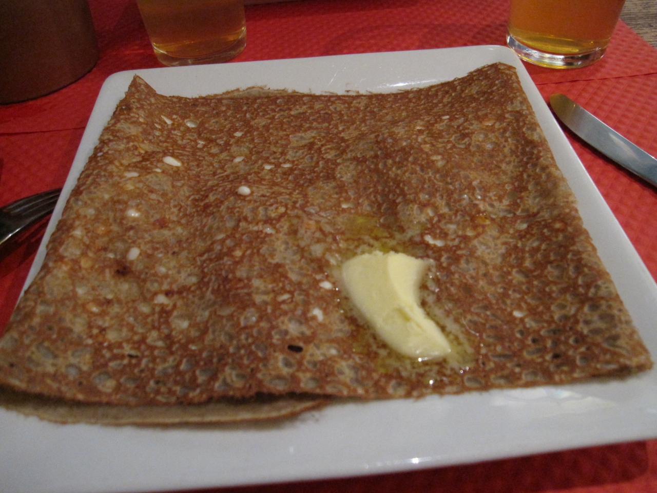 蕎麦粉のガレット、バターシュガーのみとシードルを注文しました。