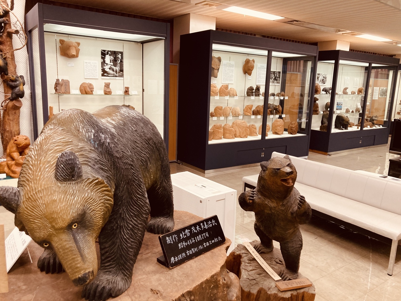 木彫りの熊発祥の地、北海道八雲町の博物館内に併設された木彫り熊の資料館です。