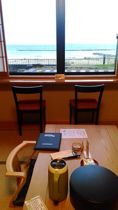 和室部屋には海に向かってカウンターと椅子があり海を眺めながらお茶も飲めたりしました。料理は夜の到着が遅かったので小食メニューをチョイスしてましたが十分な品数がありふぐ刺しや海鮮グラタンなどオリジナリティに富んだメニューでとても美味しかったです。