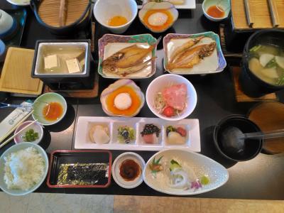 - ご当地名物のが揃っていました。お膳メニューにプラスして鹿肉のステーキや金目鯛のチャンチャン焼きが付いてます。朝食は珈琲が自由に飲めます。