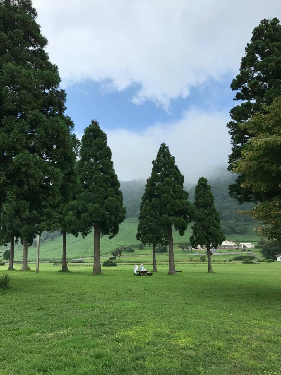 夏の大山山麓は暑いのに何故かこの場所は涼しいです。この日も冷っとしていました。広い芝生の丘にある高い木々はまるで北海道にいる様な錯覚を起こさせてくれます。ゲレンデの前には湿原があり木道を歩きながら楽しめます。