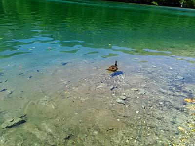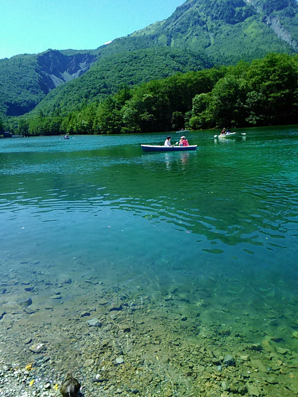 天気が良く池の色も絶好調。鴨もボートに乗っているカップルもすべてが絵になり別天地にいるようで時間を忘れてしまいそう。池の中を泳ぐ魚も水が透き通っていたのでよく見えていた。できれば夕暮れ時の大正池も見てみたい。