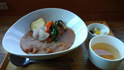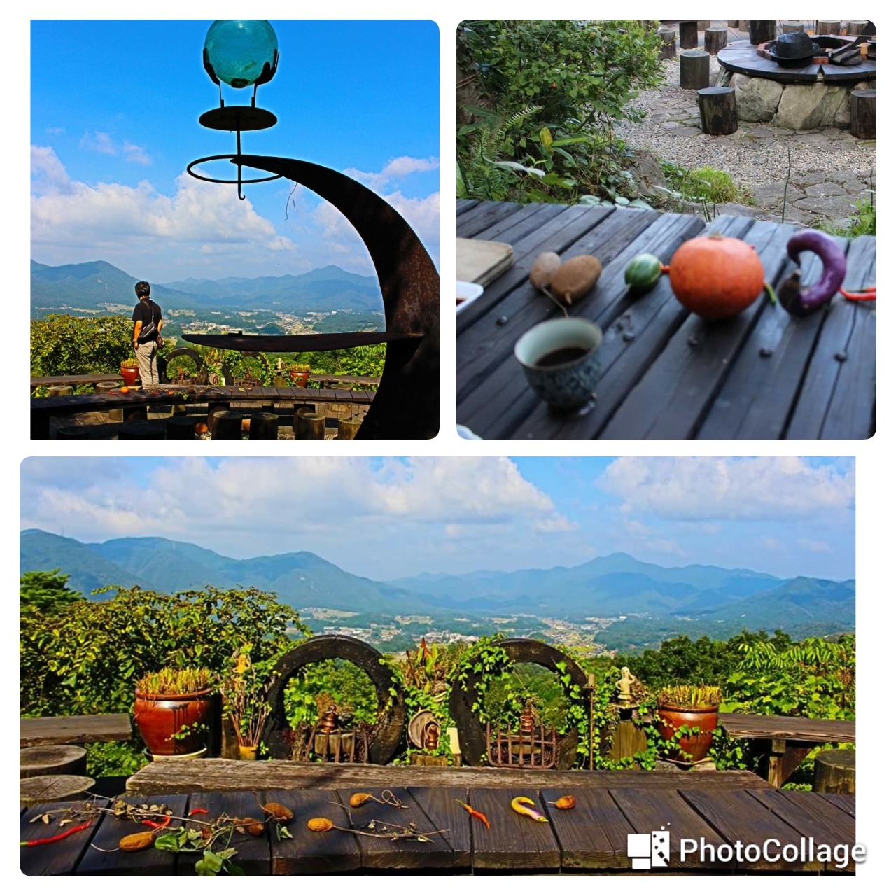 高台にある古民家で地元野菜を中心としたバイキングがいただけます。天候の良い日には庭先でもテイクアウト出来るので、幾重にも重なる山並みの絶景を見ながら食事やお茶が楽しめます。野菜や植物等のオブジェがとてもお洒落に飾ってあり食事以外でも楽しめる場所でした。