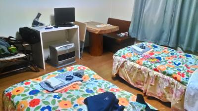 昔からある古い山小屋風ペンションです。太い丸太張りの天井がとても雰囲気がありました。食事がオイルフォンデュと焼魚とお豆腐でした。量は十分でしたが、料理は殆ど手が加えられておらずが物足りなさを感じました。夜は今回の旅で一番よく眠れました。
