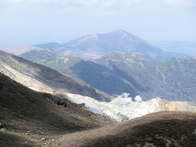硫黄山や三俣山、中岳、天狗ヶ城、稲星山、御池などアップダウンを繰り返し南方ならではの形状で飽きない登山が楽しめます。硫黄山は白や黄色のグラデーションカラーをしており、煙も上がっていました。